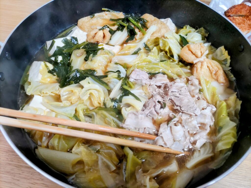 鍋だと野菜がたくさん摂取できるのがいいですね、ニラが入っているので風邪予防になります。