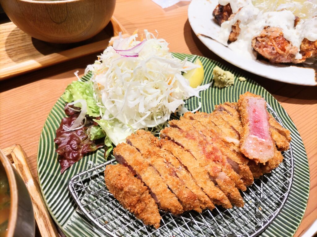 ミディアムレアで、外はサクサクの牛カツ、部位が選べる牛ロース、牛サーロイン、